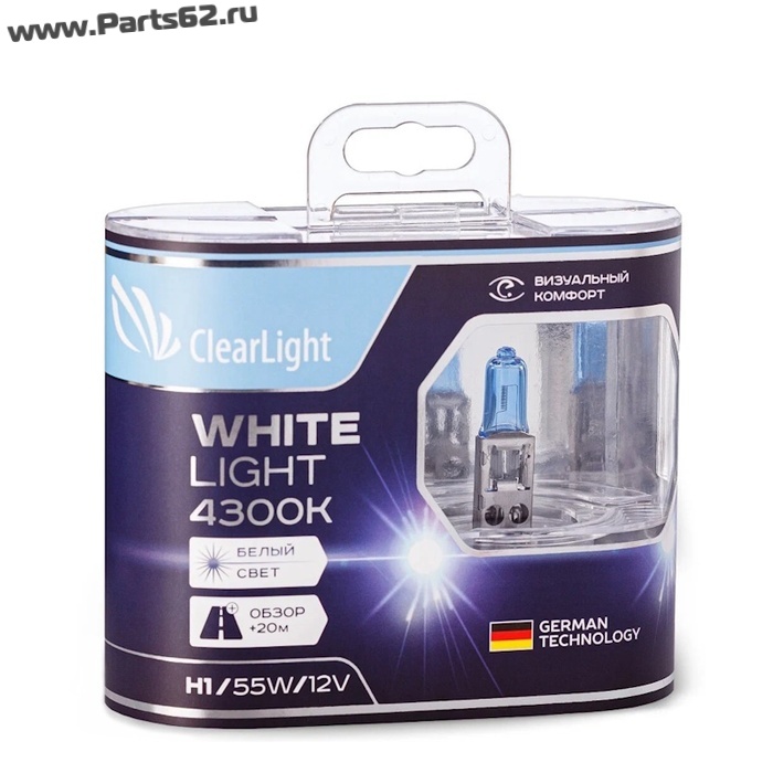 Лампа галогеновая WhiteLight. Цветовая температура 4300К. Голубовато-белый свет. С эффектом стандартных ксеноновых ламп. Идеально подходит для использования в фарах с прозрачным стеклом. Дизайн с серебряным колпачком.