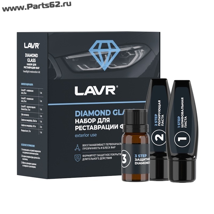 | Наименование | Набор для реставрации фар Lavr Diamond Glass, 70 мл. |