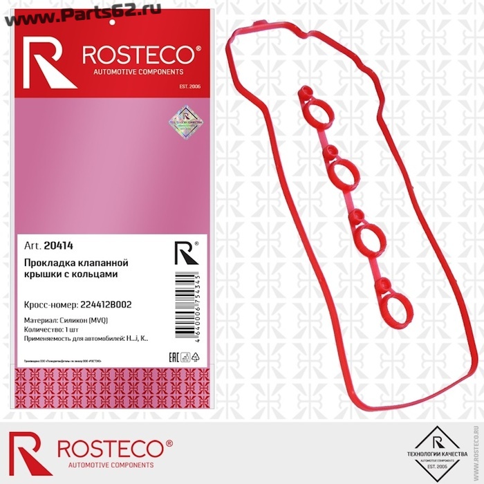 Прокладка клапанной крышки ROSTECO производится из силиконового компаунда ведущих мировых лидеров в отрасли компании, таких как WACKER, Momentive. Это обеспечивает превосходные характеристики, такие как исключительная герметичность узлов, повышенная устойчивость к агрессивной среде (нефтепродукты, щелочная среда), низкая адгезия, широким диапазоном рабочей температуры (-60°C .. +220°C).