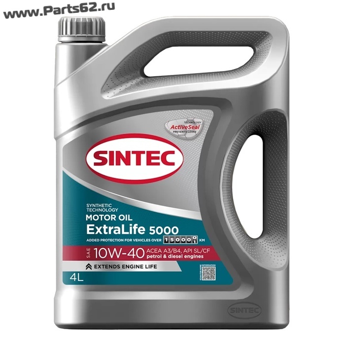 Полусинтетическое моторное масло Sintec ExtraLife 5000 10W-40 A3/B4 SL/CF разработано специально для автомобилей с большим пробегом. Увеличенное содержание противоизносных присадок, высокая термоокислительная стабильность и запас моющих свойств способствуют уменьшению износа двигателей с пробегом более 150 00 км. Технология ActiveSeal позволяет предотвратить протечки за счёт добавления специального кондиционера, сохраняющего эластичность материалов резиновых уплотнений.
