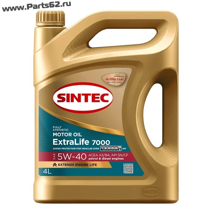 Cинтетическое моторное масло Sintec ExtraLife 7000 5W-40 A3/B4 SN/CF разработано специально для автомобилей с большим пробегом. Увеличенное содержание противоизносных присадок, высокая термоокислительная стабильность и запас моющих свойств способствуют уменьшению износа двигателей с пробегом более 150 000 км. Технология ActiveSeal позволяет предотвратить протечки за счёт добавления специального кондиционера, сохраняющего эластичность материалов резиновых уплотнений.