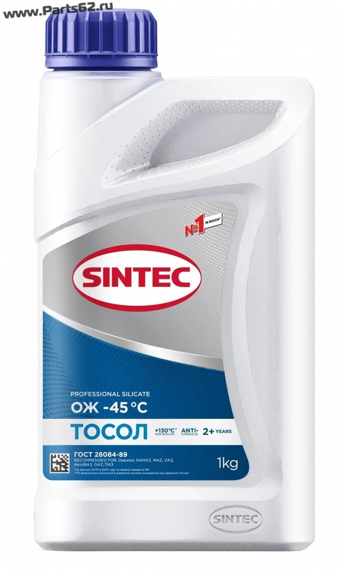 Sintec Тосол -45 – готовая к применению низкозамерзающая охлаждающая жидкость из водного раствора моноэтиленгликоля и многофункционального пакета моющих, антикоррозионных и смазывающих присадок. Предотвращает появление накипи и коррозии в системе охлаждения и обеспечивает нормальный тепловой режим работы двигателя. Не содержит нитритов и аминов, имеет повышенный срок эксплуатации. Обеспечивает защиту от замерзания до -45°С.