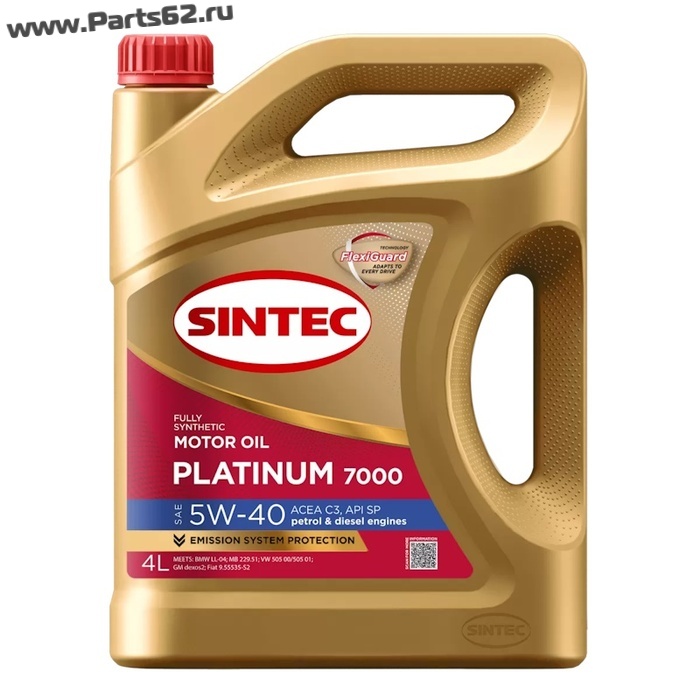 | Наименование | Масло моторное синтетическое Sintec Platinum 7000 5W-40 C3 SP, 4 л. |