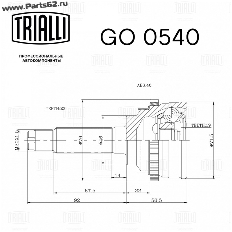 | Наименование | ШРУС наруж. для а/м Daewoo Matiz (98-) ABS Linea Perfezione (GO 0540) |