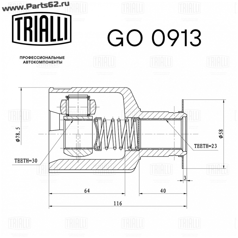 | Внешнее зубчатое соединение со стороны КПП (внутр.) | 23 |