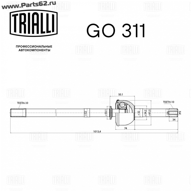 | Внешнее зубчатое соединение со стороны КПП (внутр.) | 10 |