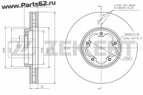 | Диаметр расположения крепёжных отверстий ступицы [мм] | 116 |