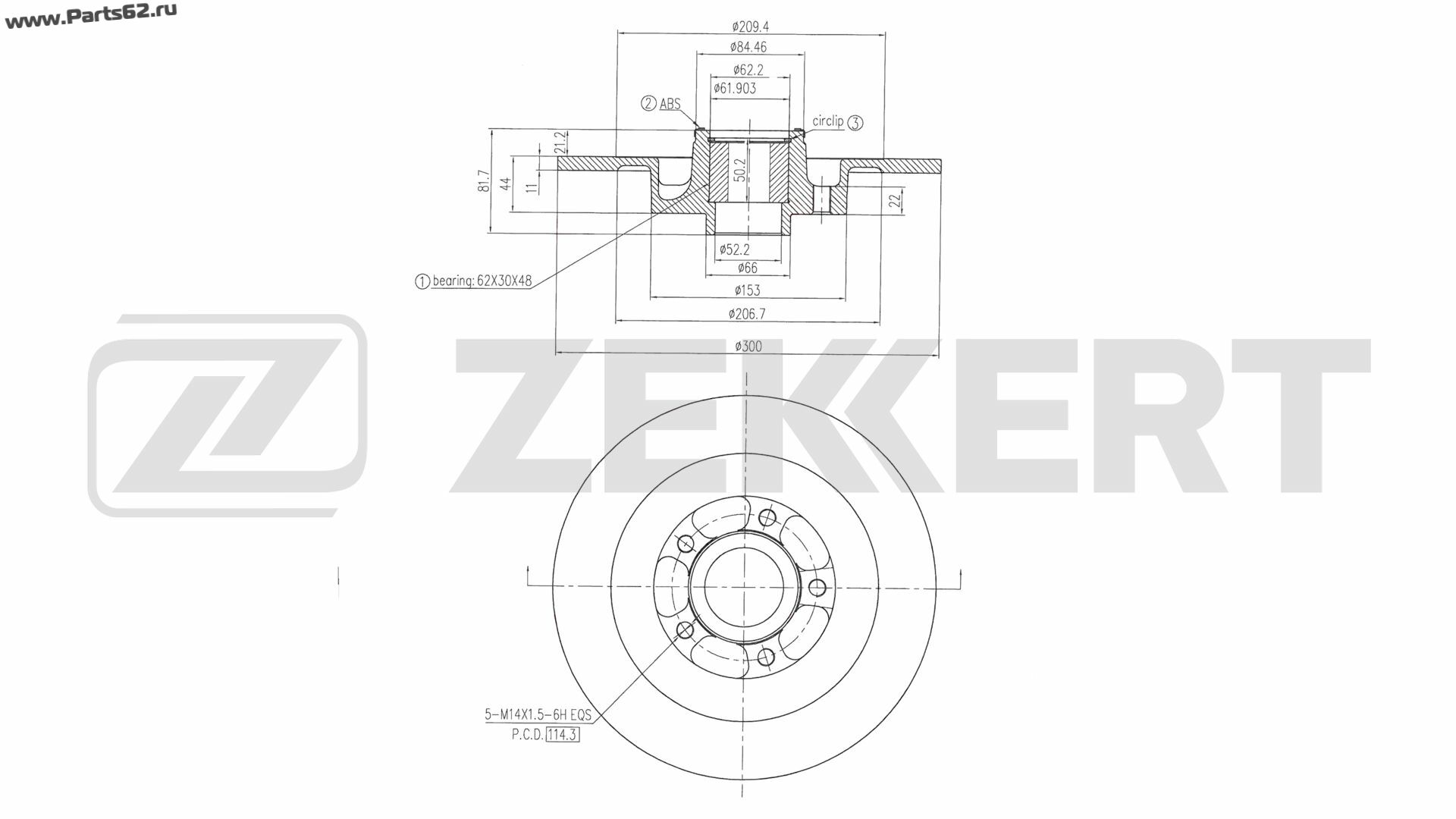 | Наименование | Диск торм. задн. Renault Laguna III 07- (с подшипником, с ABS) |